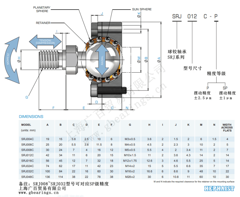 SRJ032CP價格 日本HEPHAIST球鉸軸承 SRJ032CP運用在超精密平臺
