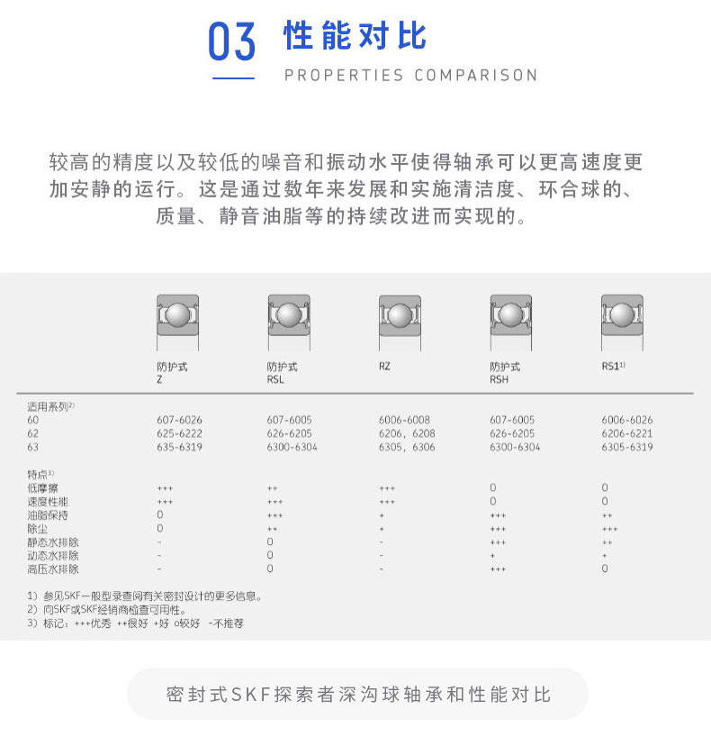 SKF深溝球軸承是一種儀器器件,有開式、雙面帶密封圈,帶密封的軸承在外圈上開有可裝密封圈或防塵蓋的溝槽,適用于高轉(zhuǎn)速甚至極高轉(zhuǎn)速的運行。